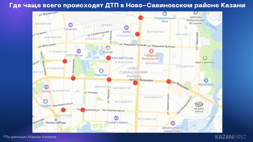 Где в Казани чаще всего происходят ДТП — подробная карта