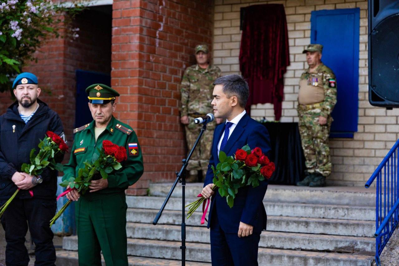 В Альметьевске открыли мемориальную доску в честь погибшего в зоне военной спецоперации Динара Кадырова. Ее разместили на фасаде дома, где проживал боец. На церемонии открытия собрались родные, друзья, сослуживцы и жители города. Об этом сообщает пресс-служба администрации Альметьевского района.