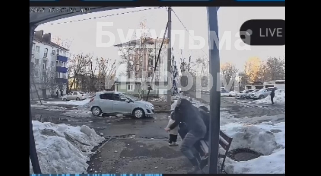 В Бугульме глыба льда чуть не убила детей во дворе одного из домов. Момент происшествия попал на видеокамеру домофона.