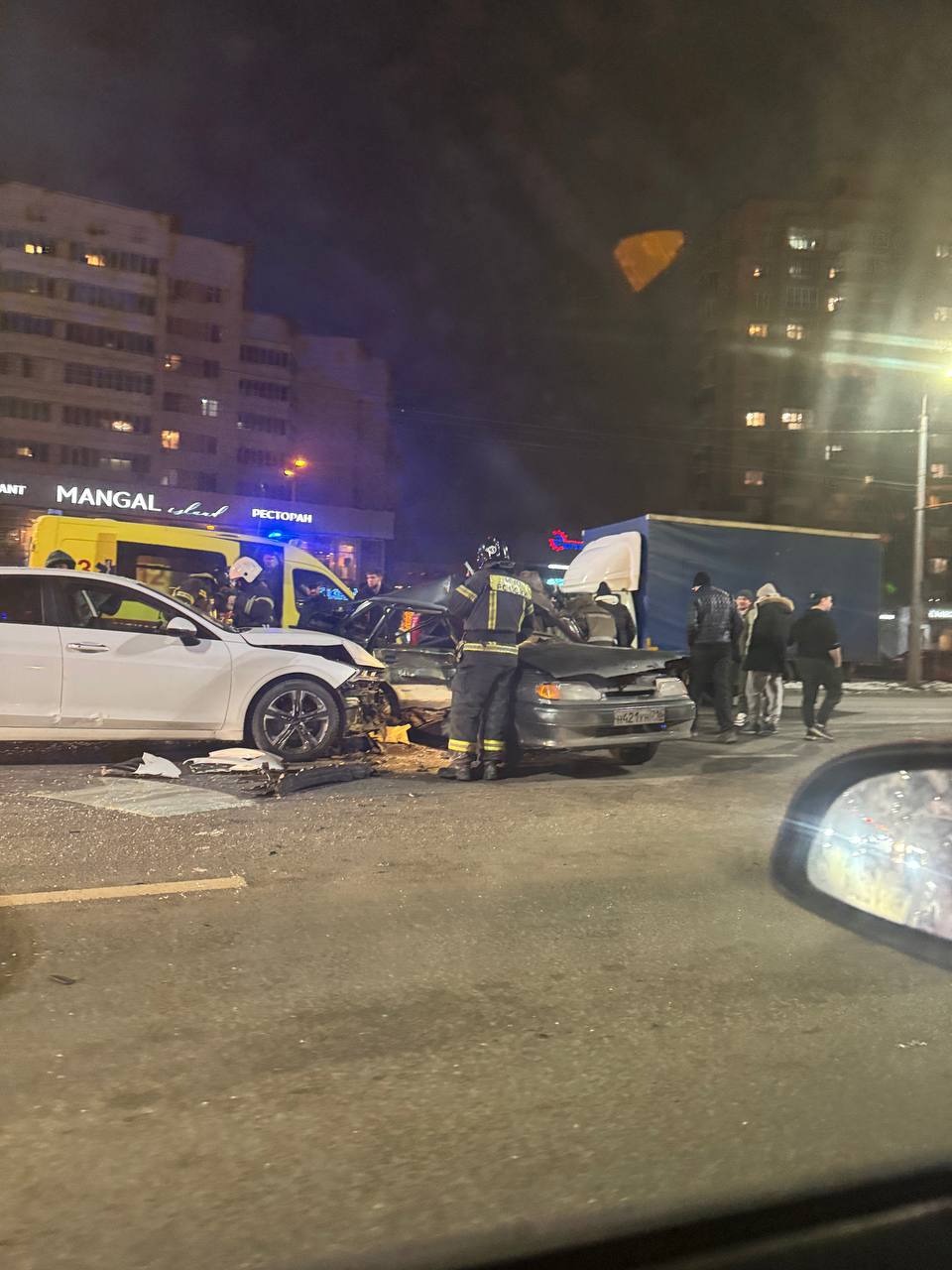 В Казани на перекрестке улиц Бондаренко и Чистопольская произошла серьезная авария. Очевидцы произошедшего опубликовали фото с места происшествия в социальных сетях.