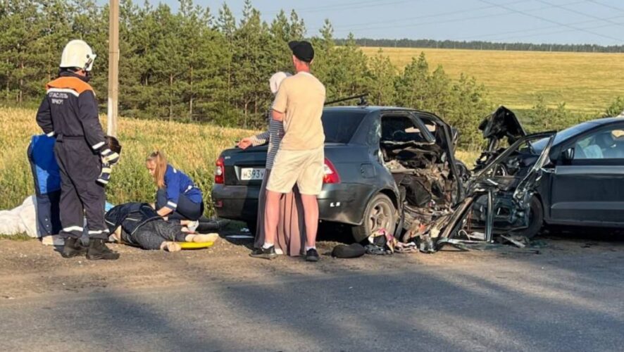 На фотографиях видно сильно поврежденный автомобиль. На месте работают сотрудники скорой медицинской помощи. По предварительным данным, в результате ДТП есть погибшие. Подробности аварии уточняются.