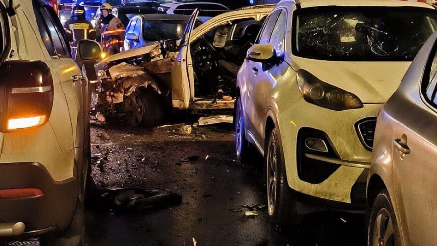 Появилось видео с места аварии, где рванула легковушка с человеком внутри. Кадры опубликовали в социальных сетях очевидцы происшествия.