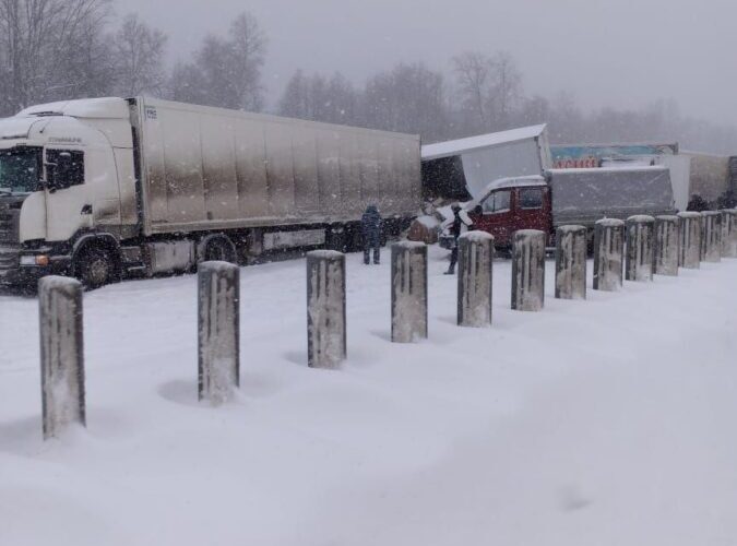Кроме того, авария с участием нескольких грузовых авто произошла на трассе М7. Сейчас там затруднено движение.