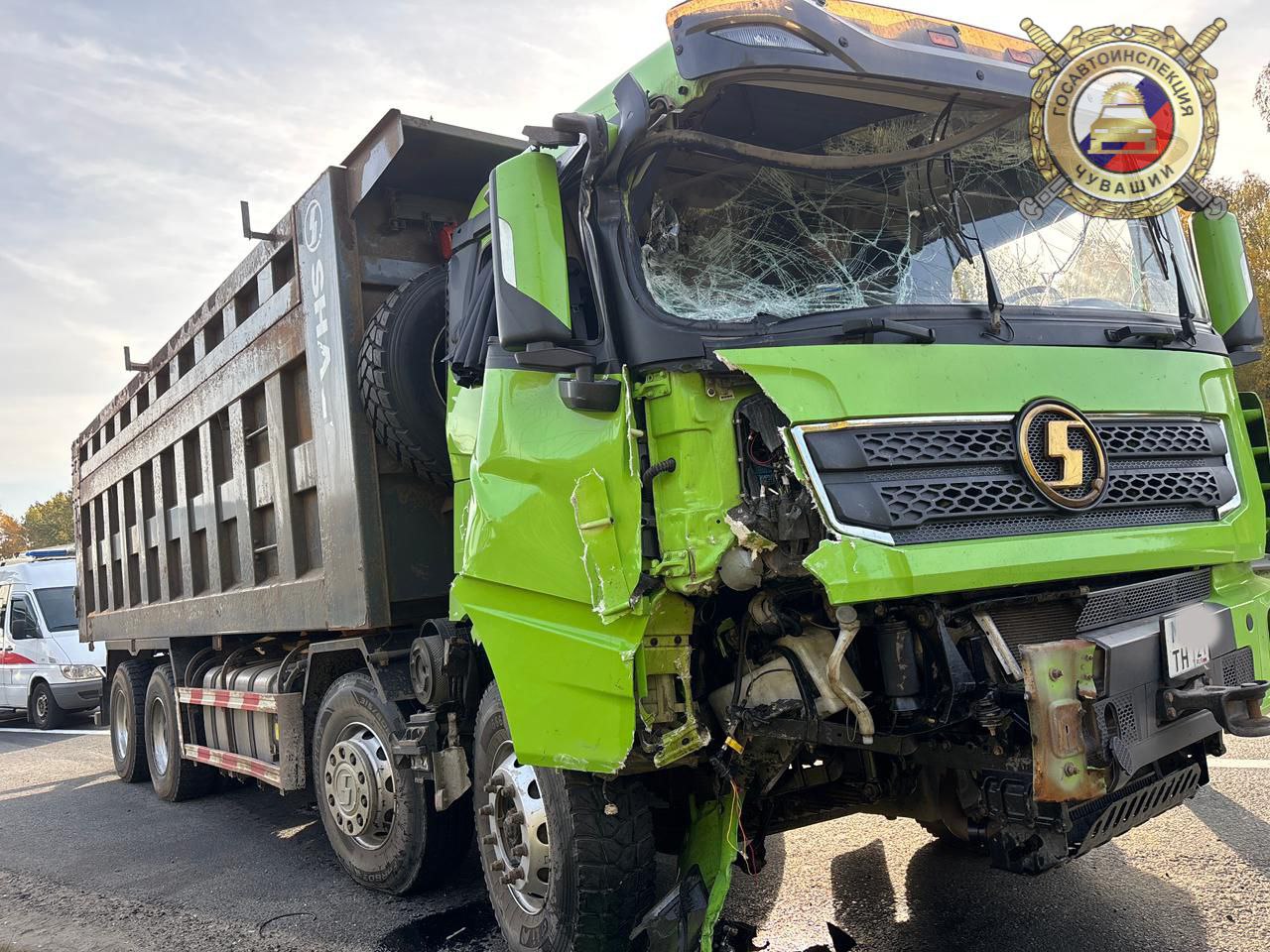 По предварительной информации, груженый песком грузовик Shacman, не соблюдая дистанцию, столкнулся с впереди едущим