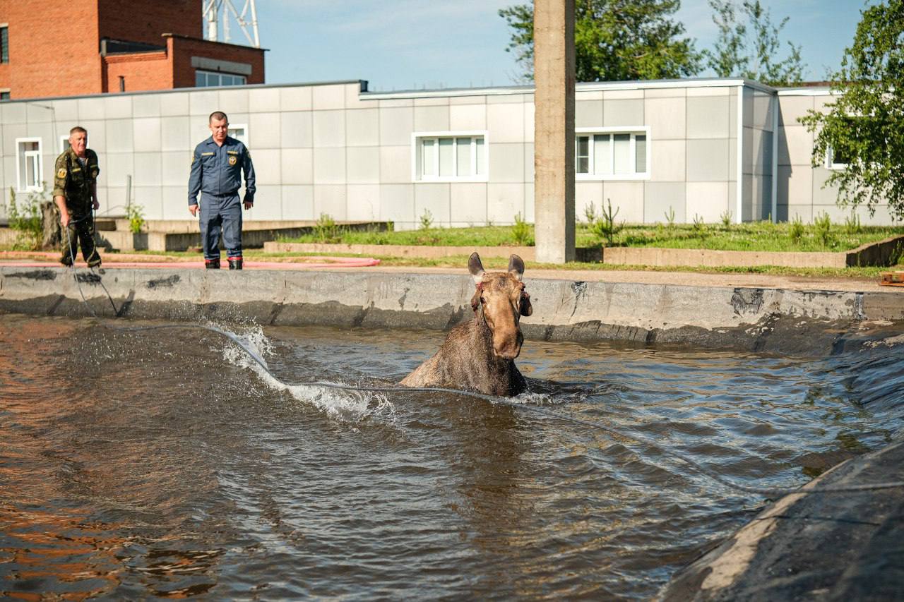 В Нижнекамска пожарные спасли лося, который забрёл на территорию промышленной зоны и упал в водоем. Как рассказал начальник дежурной смены службы пожаротушения Владимир Шипков, недалеко от объекта со стороны леса есть невысокий забор, который животное могло перепрыгнуть.