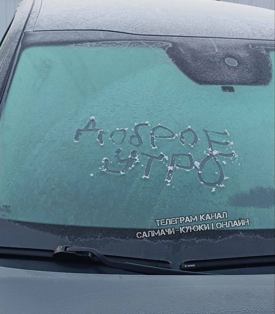 На кадрах видно пожелание доброго утра, написанное на стекле, которое покрыто инеем. В Казани новая неделя началась с заморозков. Сегодня утром столбик термометра почти достиг нуля.