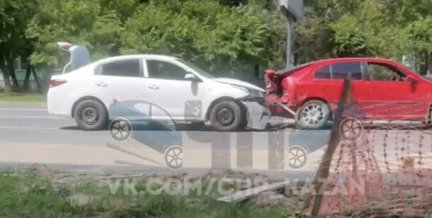 Сегодня в Казани на улице Восстания столкнулись три иномарки. Видео с места происшествия распространилось в социальных сетях.