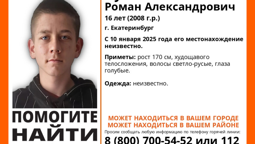 В Татарстане продолжаются поиски 16-летнего подростка из Екатеринбурга. Парень исчез сразу после новогодних праздников — 10 января. Ориентировка все также остается на странице поискового отряда «Лиза Алерт».