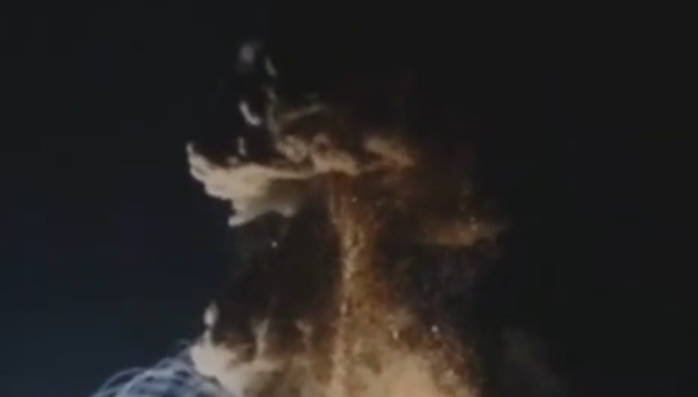 На кадрах видно, как ночное небо освещает огромный столб пламени.