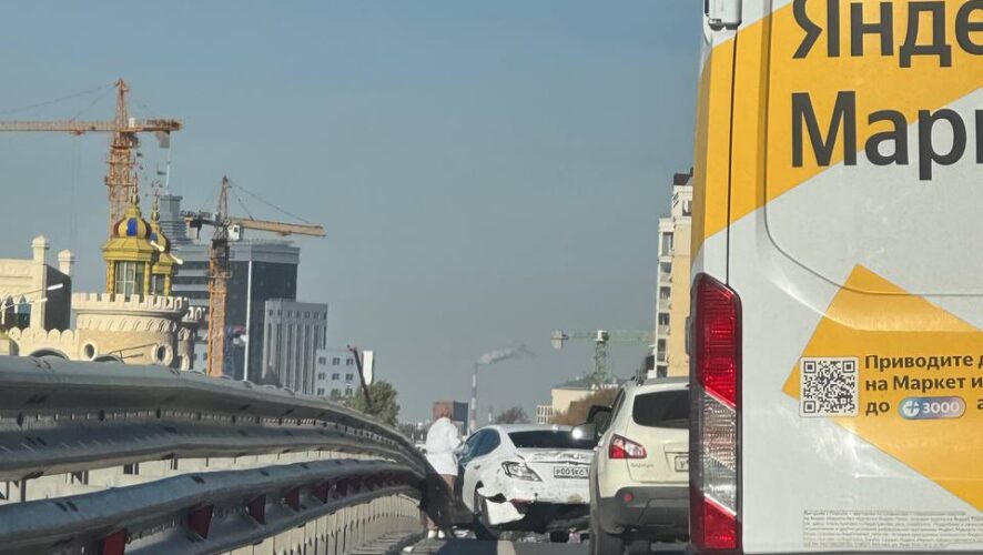 На кадрах видно, что, из-за столкновения нескольких авто, проезд по проспекту практически заблокирован. Проехать по нему можно только по средней полосе.