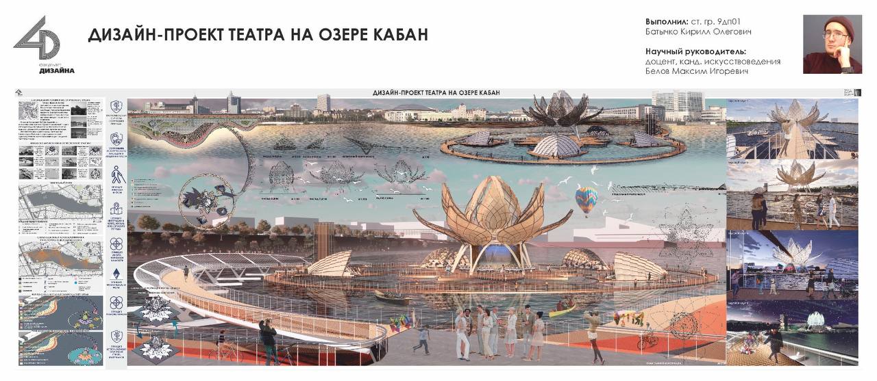Дизайн-проект на озере Кабан также не сможет оставить людей равнодушными. Архитектор предложил установить новую пешеходную зону с подсветкой, а также здание в форме цветка. Оно тоже отличится яркой подсветкой.