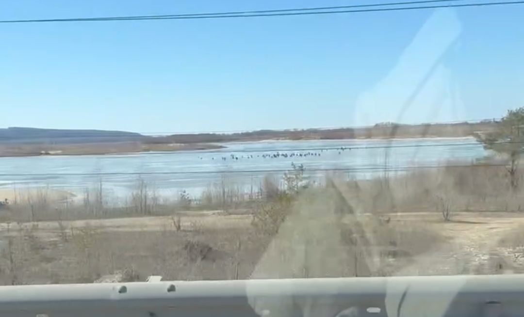 На кадрах видно, как любители зимней рыбалки расположились группами на истончившемся льду водоема.