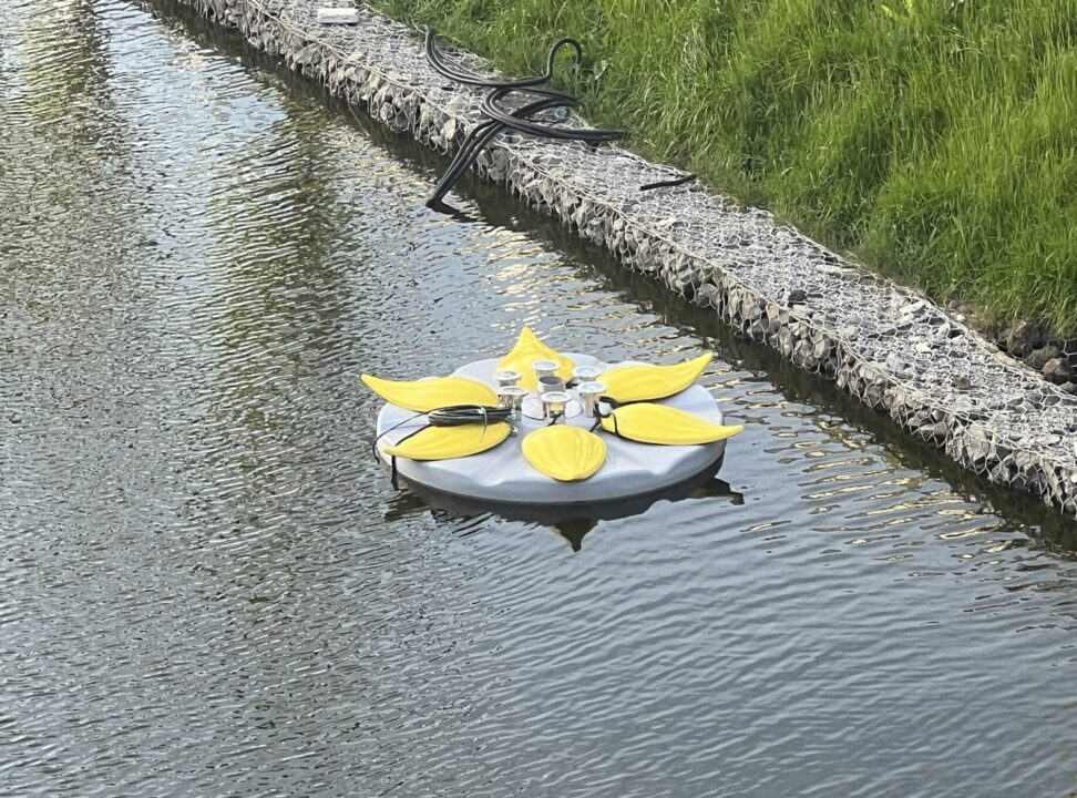 На кадрах видно, что фонтан сделан в виде желтого цветка из 6 лепестков. Всего в фонтане 7 струй. Вдоль Булака уже можно заметить минимум 4 таких фонтана.