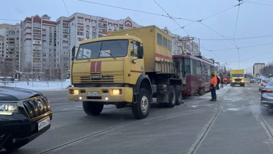 Сообщается, что трамвай №1 пошёл в разрез из-за неполного срабатывания механизма стрелочного перевода. Пострадавших в результате случившегося нет.
