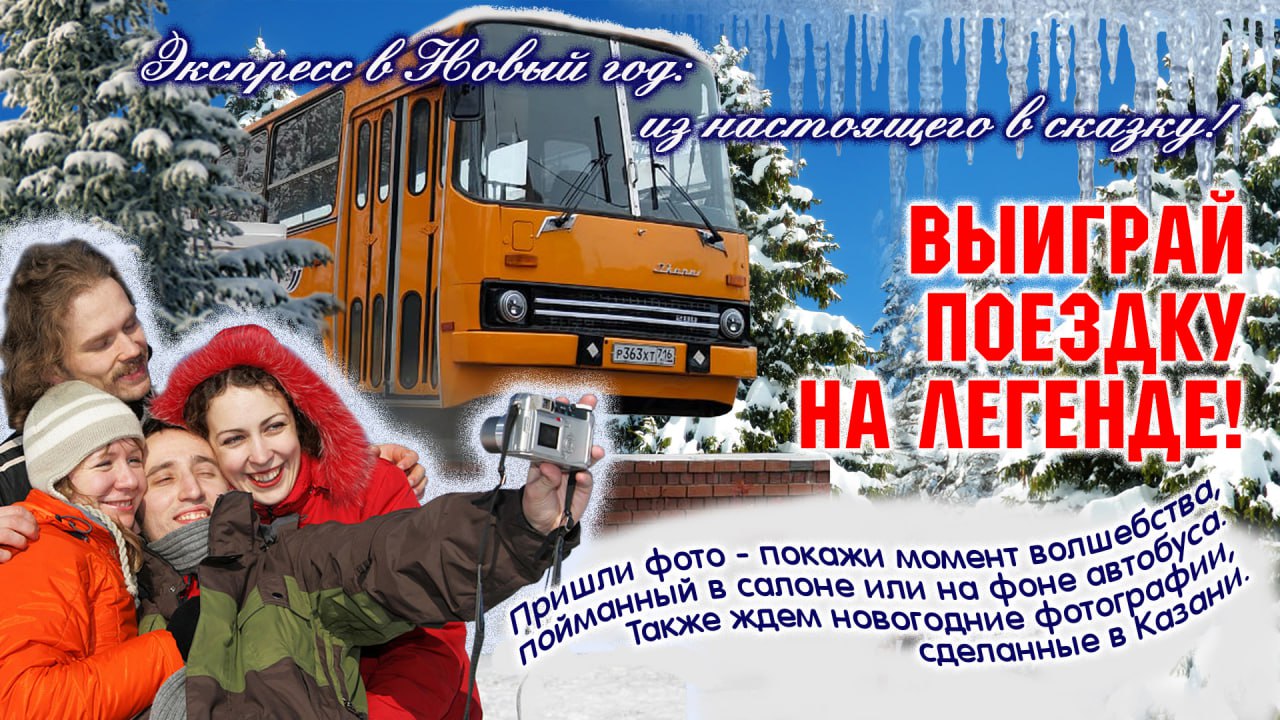 Казанское транспортное предприятие МУП «ПАТП №2» приглашает горожан принять участие в новогоднем конкурсе. Главный приз — поездка на отреставрированном «Икарусе-280», том самом, что в восьмидесятых и девяностых годах возил пассажиров по городским маршрутам.