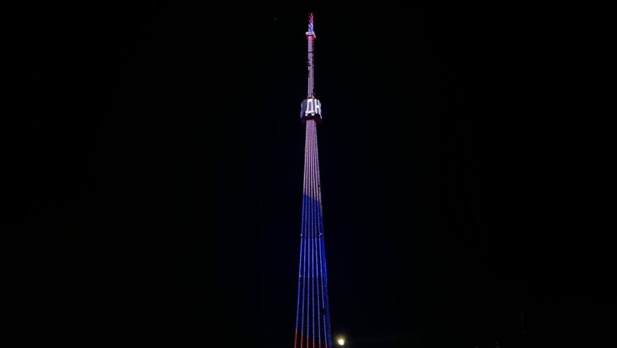 В День народного единства, 4 ноября, казанская телебашня загорелась подсветкой в цветах российского флага.