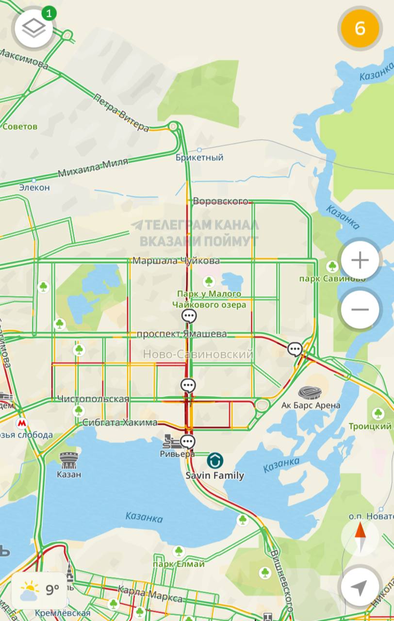 Сегодняшнее утро в Казани выдался непростым для автомобилистов. Пробка на Фатыха Амирхана в сторону Миллениума растянулась почти на 4 километра. Затор в километр образовался на Чистопольской, а также наблюдается пробка на проспекте Ямашева.