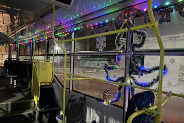 На кадрах видно, что в популярном транспортном средстве казанцев появились гирлянды и новогодние надписи. Окна украсили звездами, а также создали имитацию главного символа праздника — Новогодней елки, из мишуры.