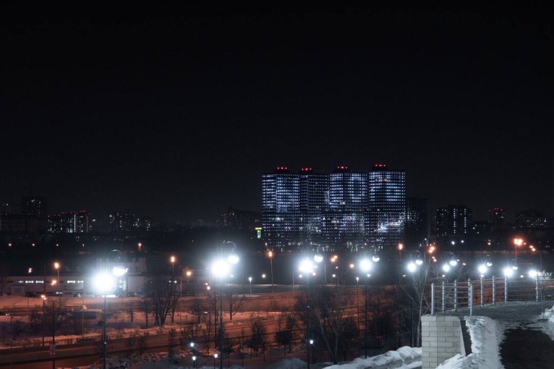 Вместо привычного российского триколора и гуляющих по фасаду людей из огней, на стенах высоток появилась надпись «Выборы». Не исключено, что таким ярким способом владельцы ЖК приглашают горожан на голосование, которое состоится в республике с 15 по 17 марта.