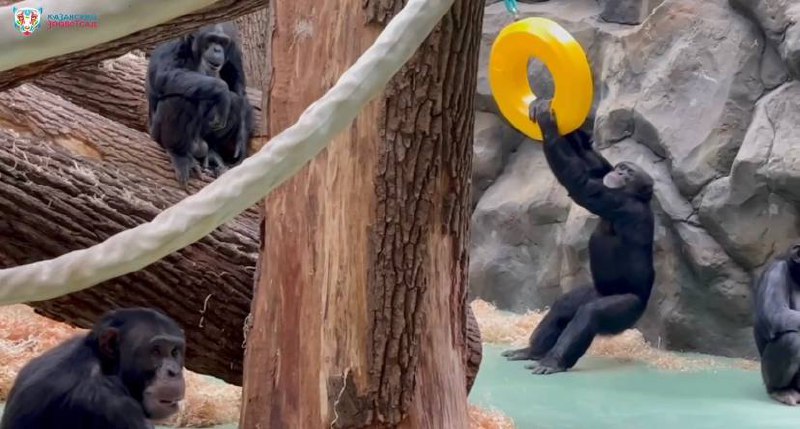 Казанский Зооботсад показал, как играются и веселятся шимпанзе. Они опубликовали видео в своем телеграм-канале.