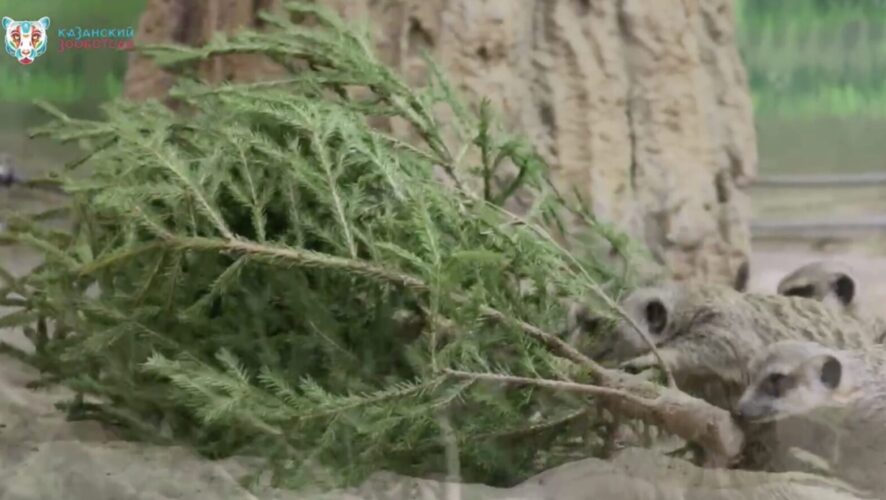 В пятницу, 12 января, в Казанском зоопарке поставили деревья в вольер сурикатов, сообщается в Телеграм-канале зоопарка.