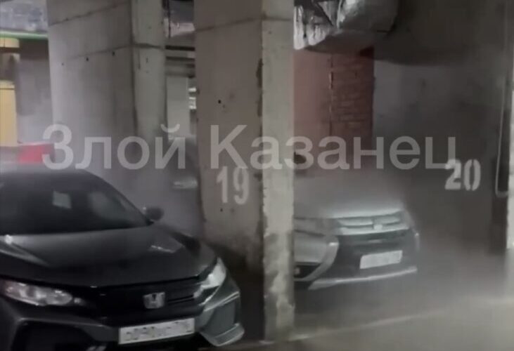 Импровизированная автомойка внезапно «открылась» на подземном паркинге в казанском ЖК «Голливуд», который располагается на Аметьевской магистрали. Здесь из-за прорыва трубы кипятком частично затопило стоянку. Горячая вода хлестала сверху, заливая припаркованные автомобили.