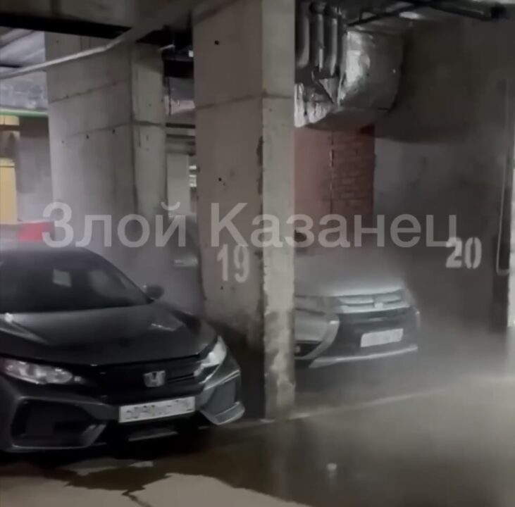 Импровизированная автомойка внезапно «открылась» на подземном паркинге в казанском ЖК «Голливуд», который располагается на Аметьевской магистрали. Здесь из-за прорыва трубы кипятком частично затопило стоянку. Горячая вода хлестала сверху, заливая припаркованные автомобили.