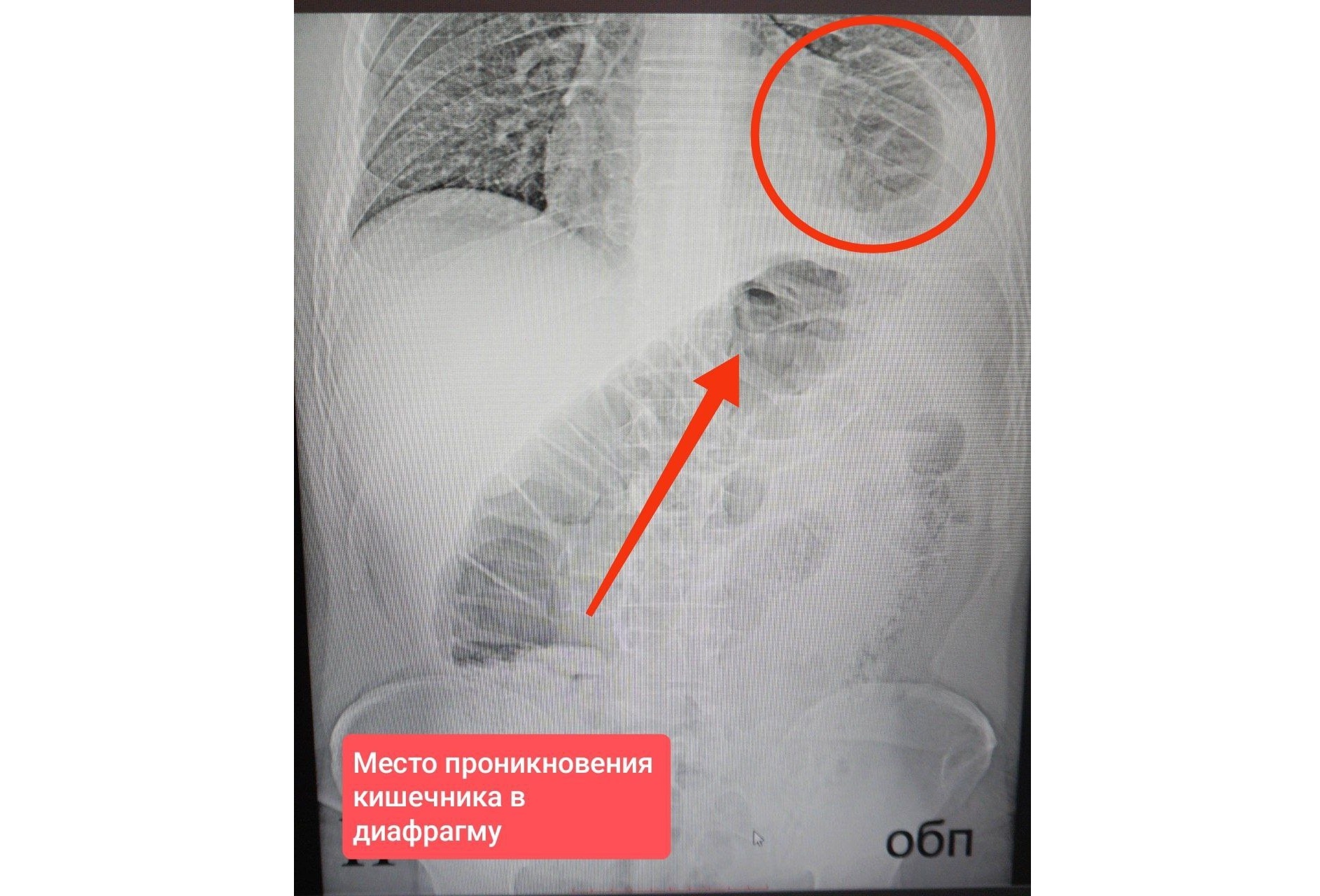 — Причина? Вероятно, ножевой удар в грудь, полученный еще в 2017 году. Тогда лезвие, пройдя через легкое и диафрагму, оставило после себя небольшое отверстие. Со временем в него проникла петля кишечника, что привело к кишечной непроходимости – опасному состоянию, угрожающему жизни, — поделились медики.