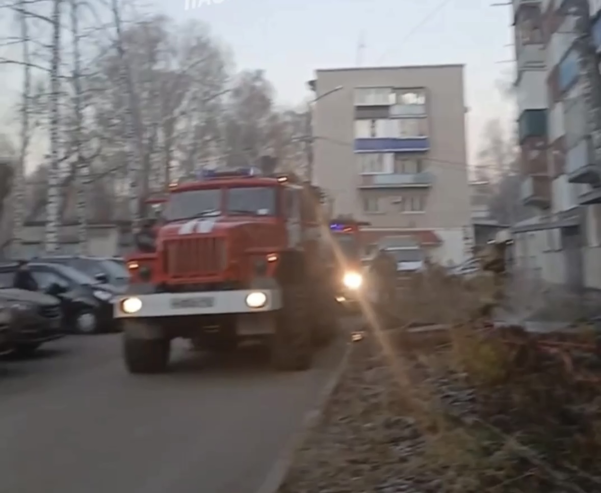 По словам свидетелей, загорелась квартира на четвертом этаже пятиэтажного дома. На кадрах видно, что из окна валит густой серый дым.