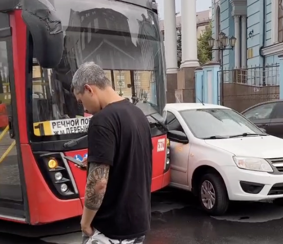 Сегодня в центре Казани произошло ДТП с участием автобуса и легковушки. Кадры с места происшествия появились в социальных сетях.