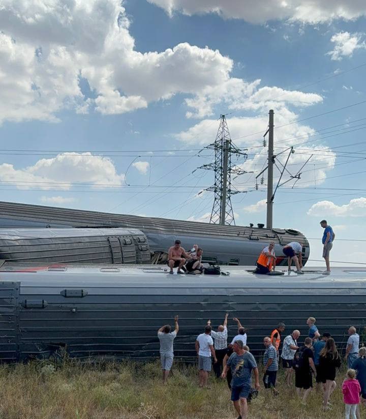 Трагедия произошла сегодня днем возле хутора Котельниково в Волгоградской области. По предварительным данным, водитель самосвала грубо нарушил правила и выехал на переезд перед пассажирским поездом. Машинист попытался экстренно затормозить, но избежать столкновения не удалось. В результате восемь вагонов сошли с рельсов и завалились.