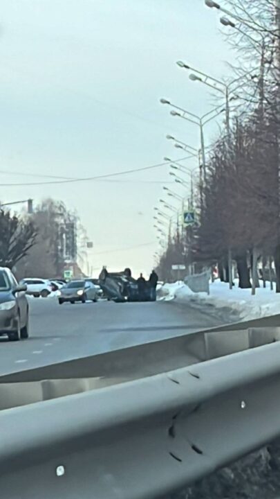 На фото, которое сделал очевидец, видно, что автомобиль завалился на крышу. Второго участника аварии рядом не видно.