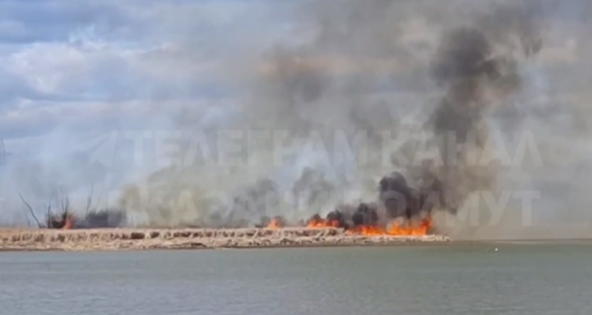 На кадрах с места событий запечатлена впечатляющая картина: языки пламени распространяются по береговой линии, а густой дым поднимается высоко в небо. Огонь охватил значительный участок прибрежной растительности.