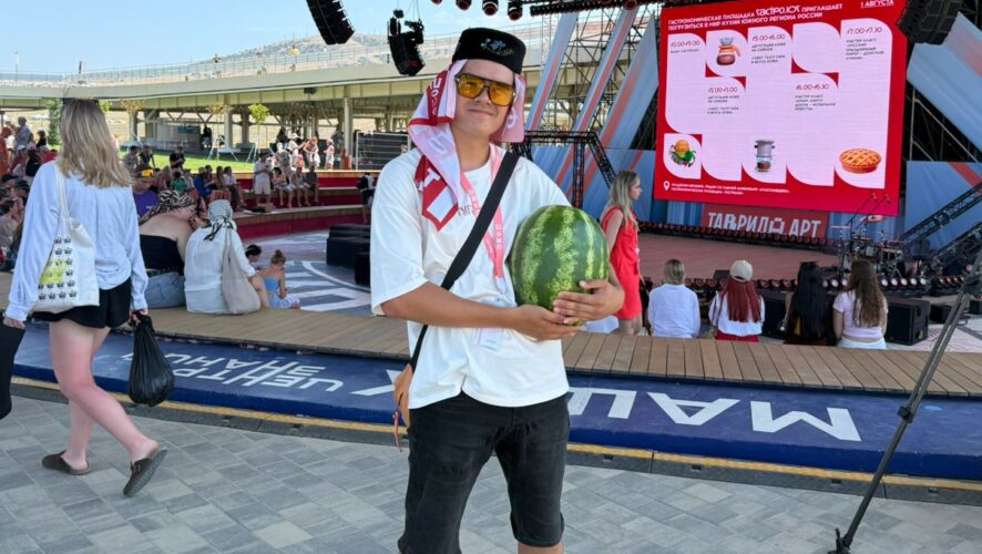 Утро первого дня на площадках фестиваля «Таврида.АРТ» традиционно началось с множество активностей и интересных локаций. Гости и участники кластера смогли стать частью арбузного фестиваля — узнать интересные факты о самой любимой летней ягоде и испытать с себя в состязаниях. Побороться за главный приз в конкурсе «Кто быстрее очистит арбуз палочкой от косточек» вышел студент из Казани Роман Хусаинова. Юноша с юной помощницей оказались самыми быстрыми и смогли очистить летнюю ягоду от косточек. Журналисту KazanFirst парень рассказал, что на фестиваль приехал впервые и впечатлен масштабами мероприятия. Вместе с Романом на крымское побережья приехала внушительная делегация из Татарстана — больше 70 юношей и девушек.