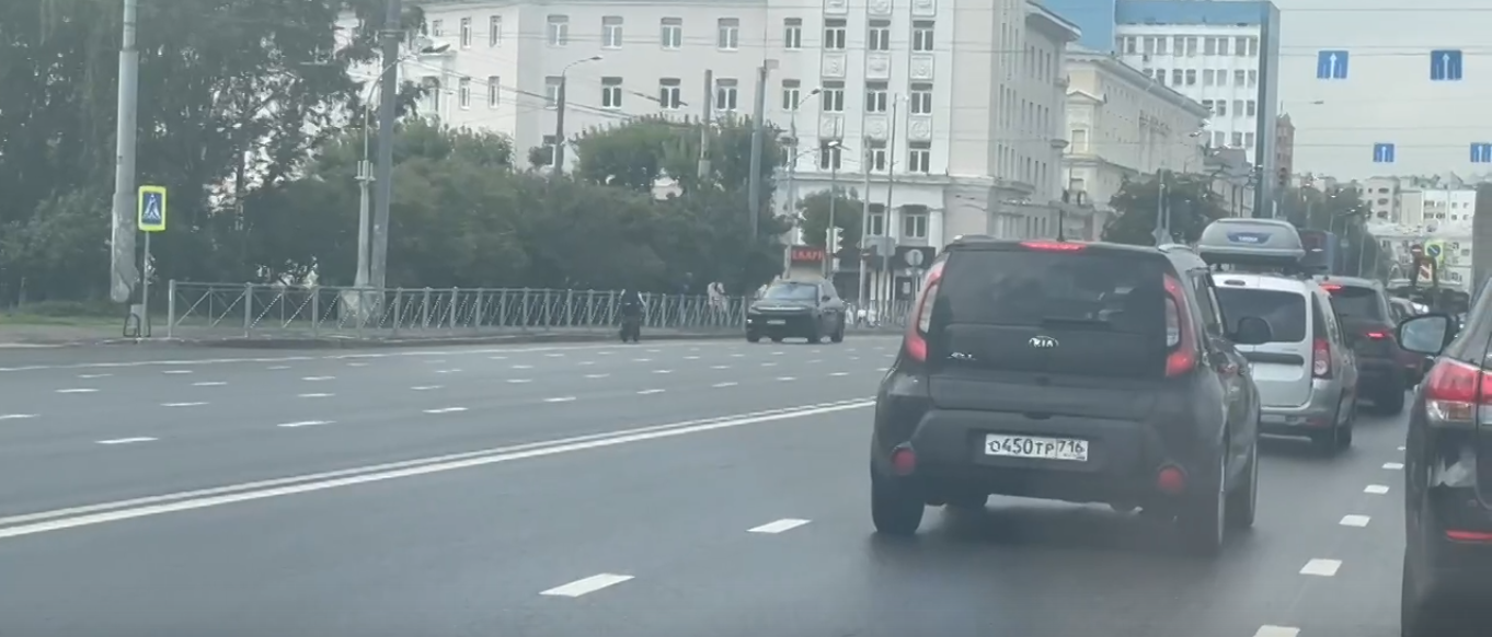 Лихача заметили неподалёку от Корстона и остановки «улица Абжалилова». На кадрах видно, как он едет на встречной полосе по проезжей части. Видимо, он передвигался по полосе, предназначенной для автобусов.