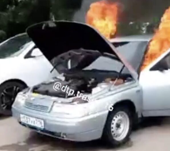На кадрах видно, что у автомобиля открыт капот и передние двери. Вся внутренняя часть машины уже почернела. Из нее видно большое яркое пламя. Людей в машине на кадрах не видно. Предположительно, машина стоит на парковке в одном из городских дворов. Обстоятельства случившегося устанавливаются.