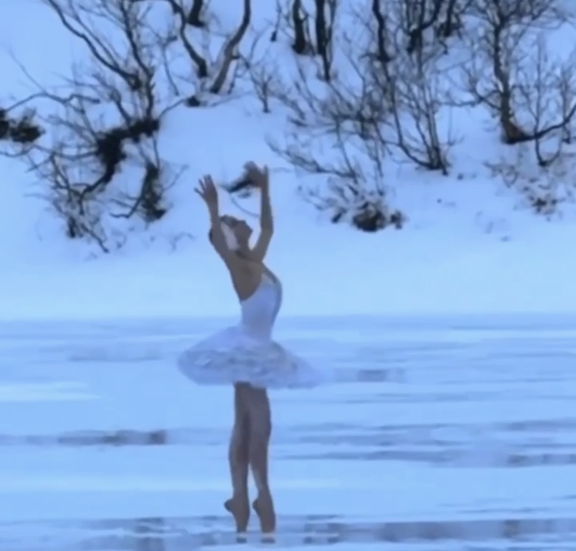 Заслуженная артистка Татарстана, балерина Мариинского театра Ильмира Багаутдинова станцевала фрагмент из «Лебединого озера» на замерзшем озере Малый Вудъявр в Мурманской области. Видео появилось в телеграм-канале депутат Алексей Рассказов.