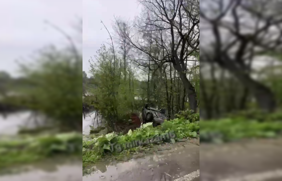 На кадрах видно, что авто лежит вверх дном в озере Кабан, недалеко от берега. Предварительно, водитель автомобиля не справился с управлением и вылетел с дороги.