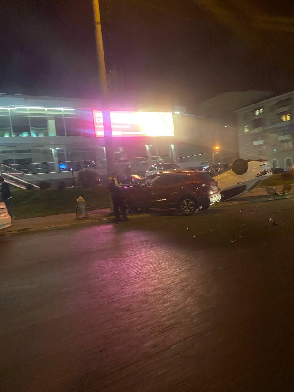 От удара корейская легковушка вылетела с дороги и завалилась на крышу. Японский автомобиль также отлетел с проезжей части и врезался в столб.