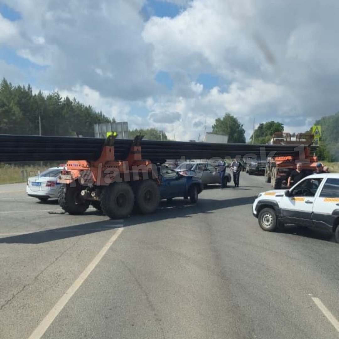 В Альметьевском районе легковой автомобиль врезался в грузовик-трубовоз рядом с железнодорожным переездом у села Кульшарипово.