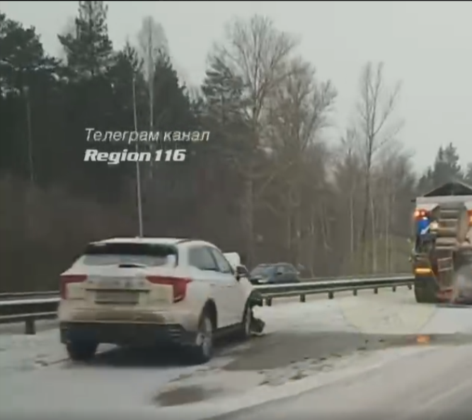 В Татарстане на трассе М7 легковушка влетела в снегоуборочную машину. Очевидцы произошедшего опубликовали видео с места аварии в социальных сетях.
