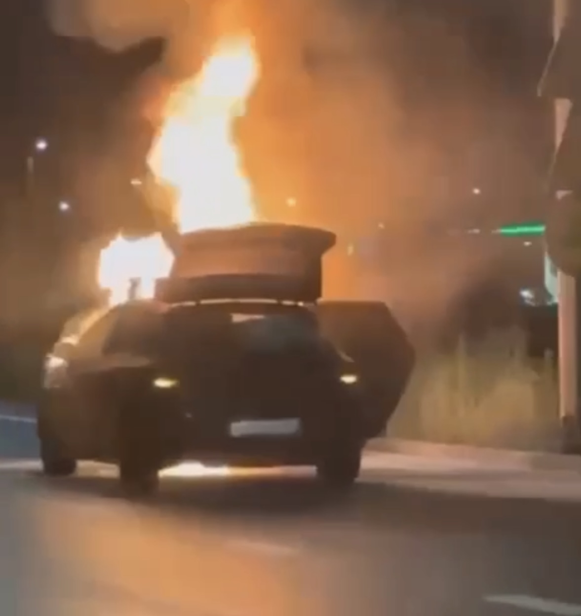 Судя по видео, которое смогли снять очевидцы, автомобиль загорелся после ДТП — на обочине стоит еще одна помятая машина. Огонь охватил моторный отсек автомобиля.