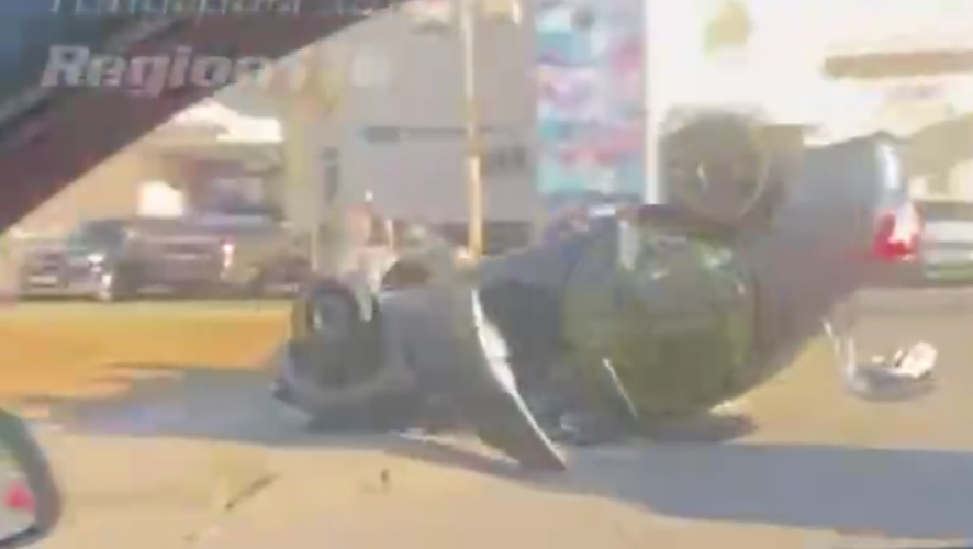 На кадрах видно, что из-за столкновения машина перевернулась на крышу. Судя по видео, удар пришелся на переднюю часть авто. Водителя рядом с автомобилем не видно. О его состоянии также не сообщается. Обстоятельства случившегося устанавливаются.