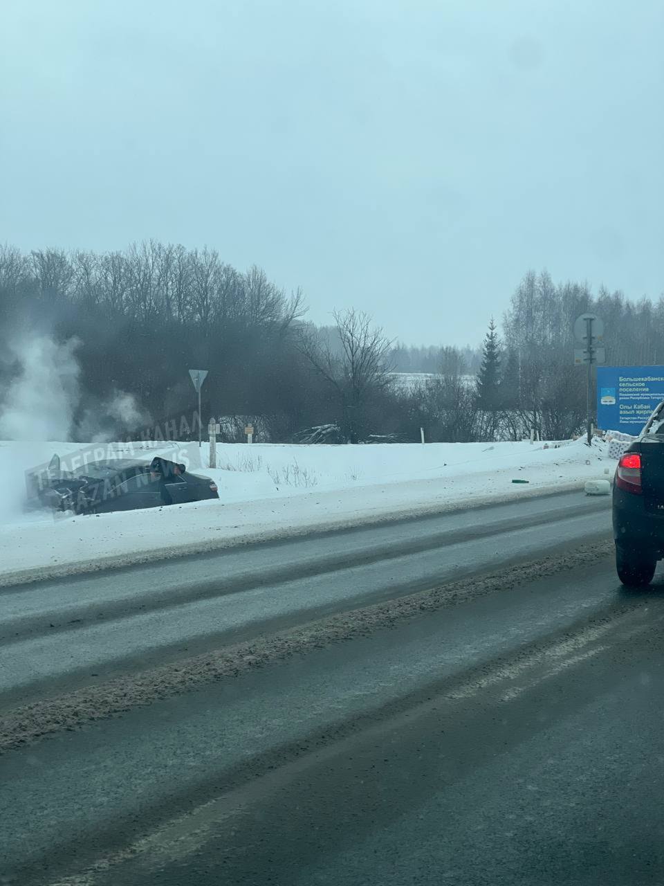Серьезная авария произошла в Казани на дороге к аэропорту после железнодорожного переезда. Об этом сообщают очевидцы в социальных сетях.