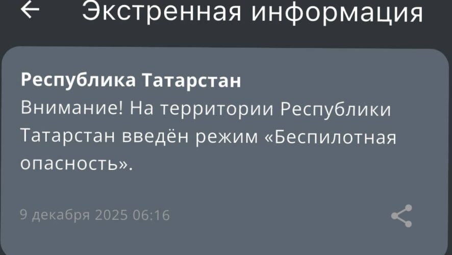 Режим беспилотной опасности вновь введен в Республике Татарстан. Сообщение от МЧС России поступило в седьмом часу утра.