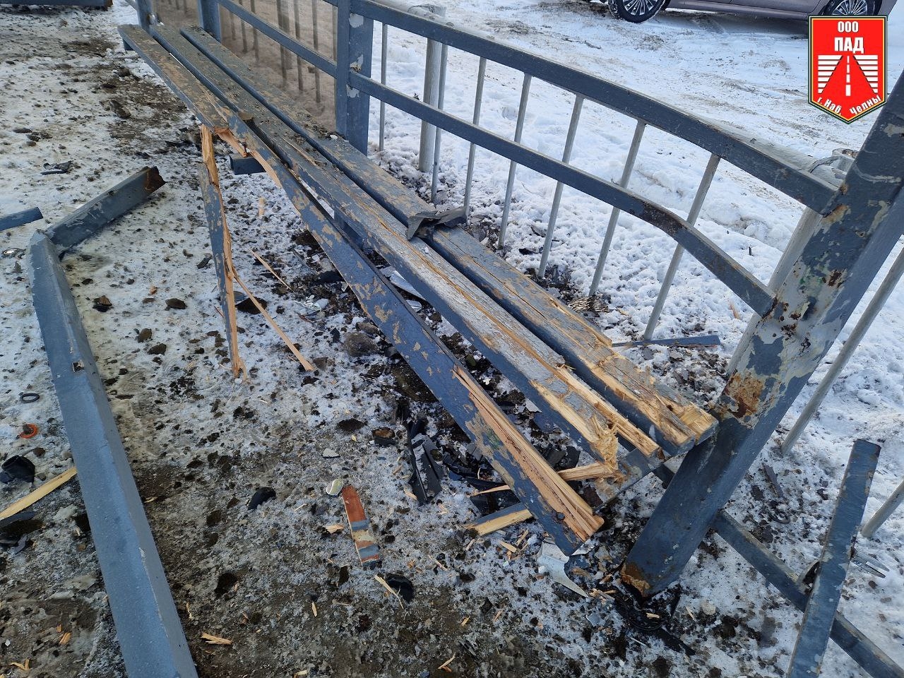Оценив следы разрушений, сотрудники предприятия пришли к выводу, что автомобиль на полном ходу влетел в металлическую конструкцию. Удар был такой силы, что его не выдержали опора и перекладина павильона. Кроме того, еще несколько фрагментов оказались погнуты. Также машина смяла мусорную урну и сломала скамейку. При этом она разбила несколько стекол, а еще на одном каким-то образом оставила след протектора.