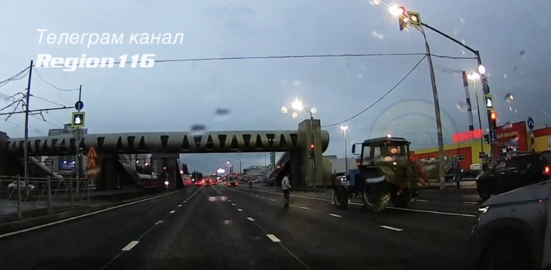 Сегодня в Казани очевидцы засняли на видео опасный маневр тракториста, который произошел на перекрестке проспекта Победы и улицы Минской.