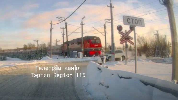 Ранее в сети появилось видео, на котором 48-летний водитель за рулём Volkswagen Tiguan сначала проезжает на запрещающий сигнал светофора, а потом, заметив приближение поезда, жмёт на педаль тормоза. Из-за плохого сцепления с дорогой остановку выполнить не удалось, и иномарка проскочила прямо перед поездом.