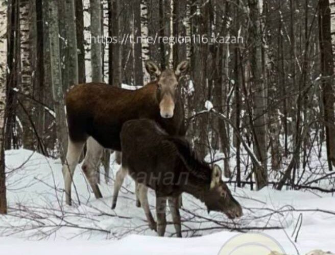 В Высокогорском районе Татарстана заметили лосей. Очевидцы опубликовали видео с лесными животными в социальных сетях.
