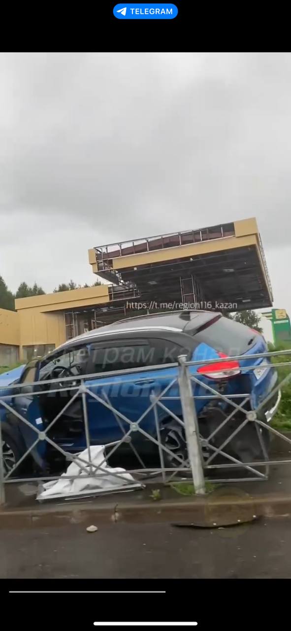 В Казани на перекрестке улиц Кул-Гали и Габишева иномарка вылетела с дороги и врезалась в забор. Очевидцы опубликовали видео с места происшествия.
